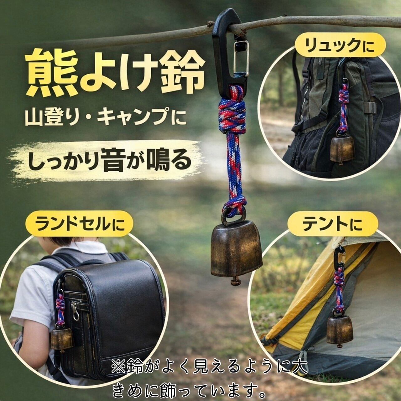 熊よけ鈴 アウトドア 熊鈴 鈴 ベル 登山用品 山鈴 キーホルダー 熊ベル 防災 カラビナ 護身 ソロキャンプ テント 熊対策