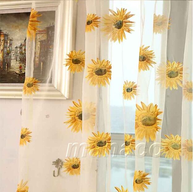 涼しげなひまわり柄のレースカーテン2枚組です♪