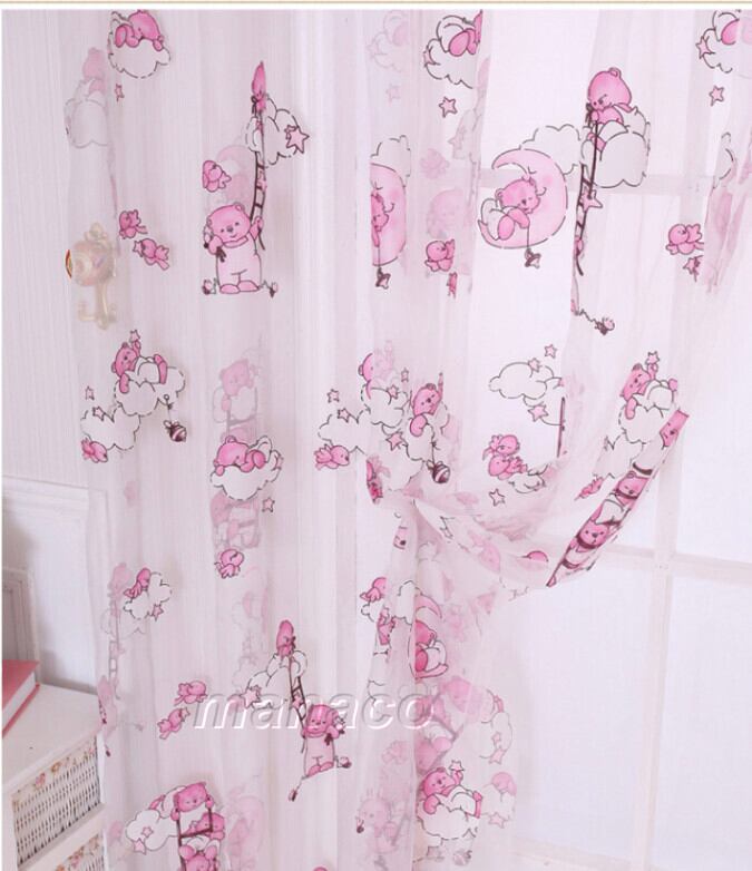 ♡熊 くま ピンク ベアー柄 プリント レースカーテン 2枚セット♡
