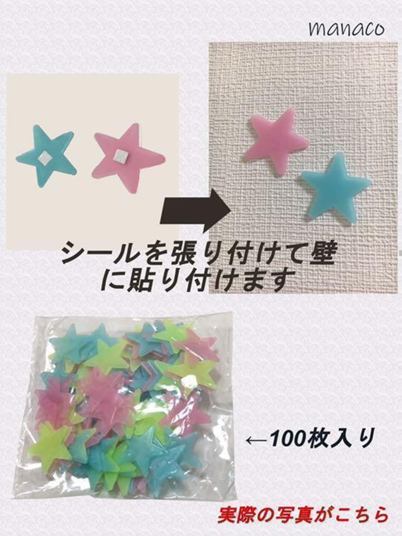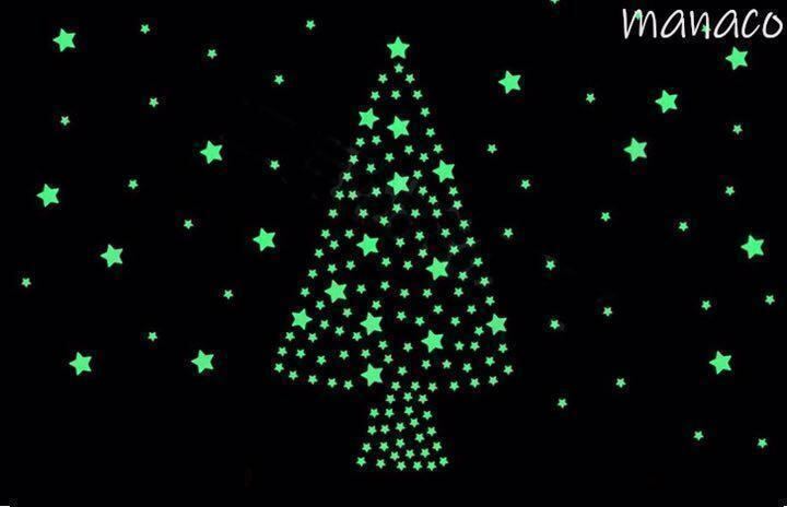 昼間の明かり 電気の明かりを蓄光して 暗闇で光る 星型のウォールステッカー(^^)