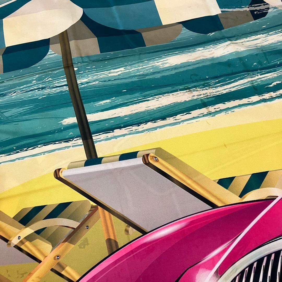 壁面の飾りつけ以外にも、テーブルクロス、目隠し用のだまし絵カーテン、のれん、ブランケットとして多機能でのご使用が可能です。